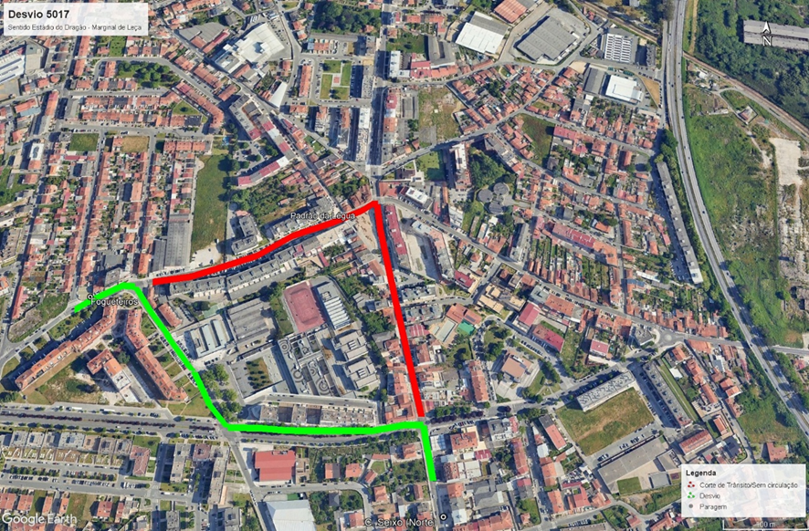 Linha 5017 – desvio sentido Estádio do Dragão – Marginal de Leça