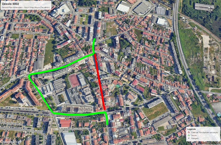 - Linha 5002 – desvio sentido Polo Universitário – Vasco Graça Moura (Decathlon)